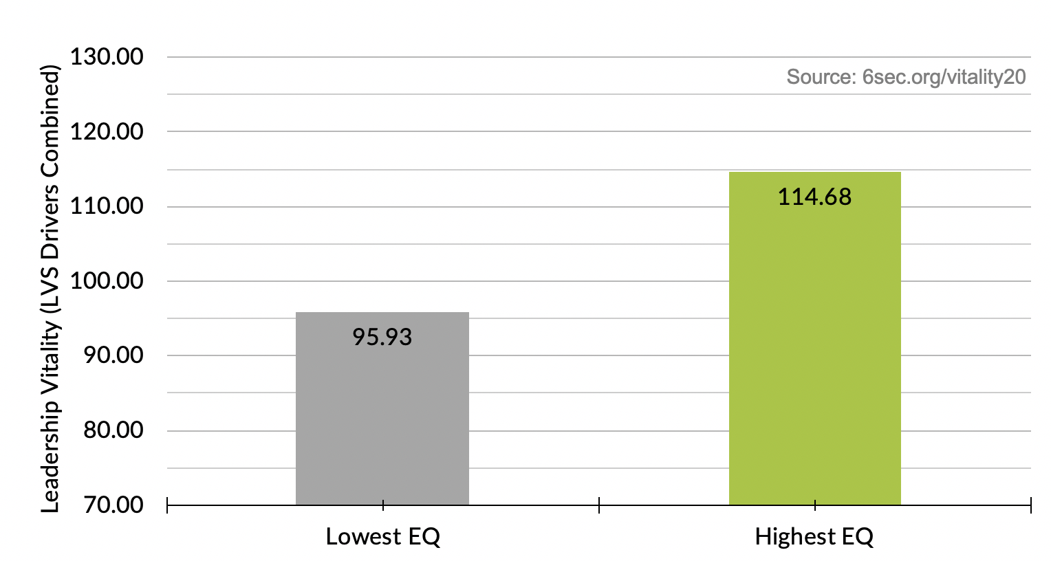 What are the links between emotional intelligence and leadership performance? New research shows 66% of the variation in scores on leadership outcomes are predicted by five key leadership drivers – and people with higher emotional intelligence are seven times as likely to earn high scores on these factors. Since 2007 the Vitality study (6sec.org/vitality) has tracked changing trends on emotional intelligence in the workplace; the 2020 installment drills into individual leadership effectiveness and the role of emotional intelligence – particularly in terms of strengthening trust and building capacity for change.