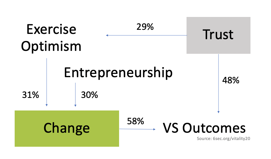 The power of Exercise Optimism and Entrepreneurship is in a proactive orientation to the world. Both involve taking ownership, feeling agency, and being future-focused. So, leaders who are able to foster a readiness for change will grow these capabilities in order to engage themselves and others in transformation. A plan is not enough: leaders need people to move the plan forward.