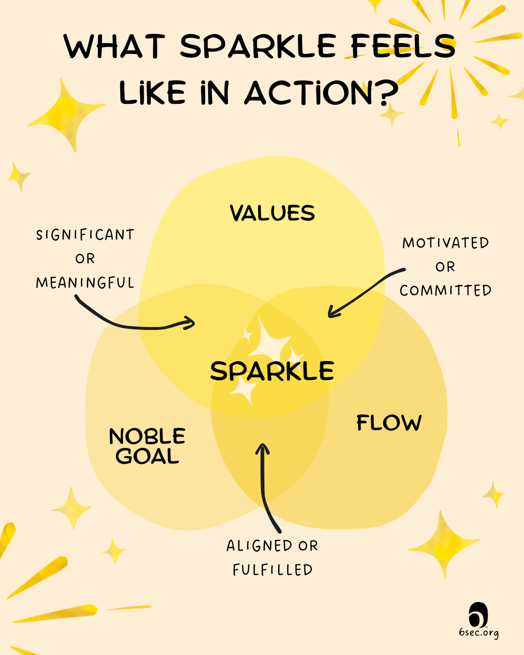 Sparkle is your authenticity — a feeling of rightness inside yourself. It’s that internal click — when your values, your strengths, and your conditions align and something in you quietly recognizes: yes, this is me.