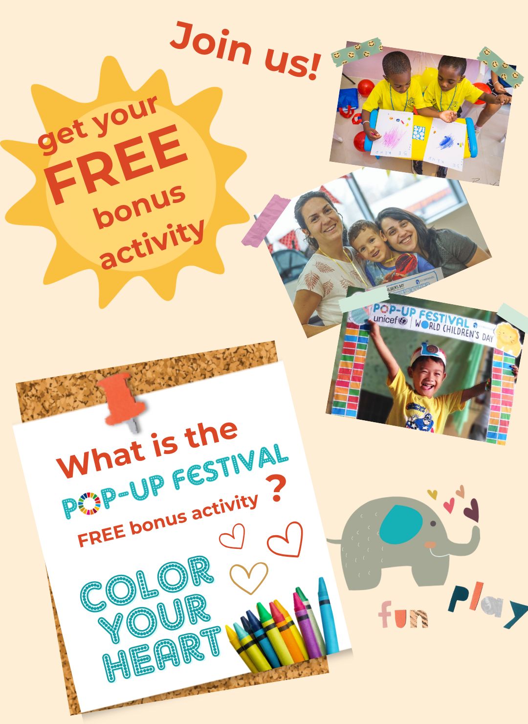 Fill in the form to sign up and participate fully in next year’s POP-UP Festival for UNICEF World Children’s Day.